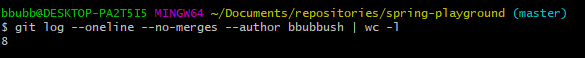 git log --oneline --no-merges --author bbubbush | wc -l